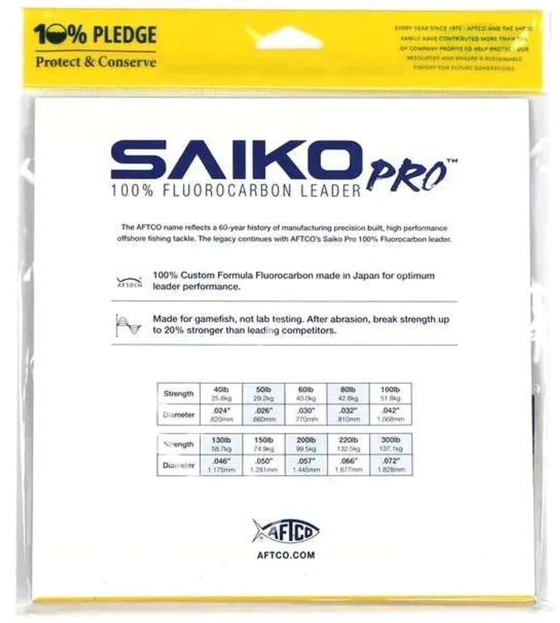 Utilizing the same Saiko Fluorocarbon leader material anglers have come to love, the Aftco Saiko Pro Wind On Leaders are a simple and easy solution for big game fishing. Wind on leaders allow anglers to quickly exchange leaders on the fly to adjust for different line class ratings, store and protect when not in use, or certainly exchange short or chafed leaders quickly when the bite is on. At the end of each Saiko Pro Wind On, a smooth, hand-crafted whipping process constructs a strong and slim connection between the Saiko Pro Fluorocarbon and braid. Its braided loop easily connects to your main line with a loop-to-loop connection, often with a Bimini Twist or other strong loop knot. This rigging flys through guides or outrigger clips easily, making for one convenient, simplistic connection for jigging, popping, trolling or chunking.